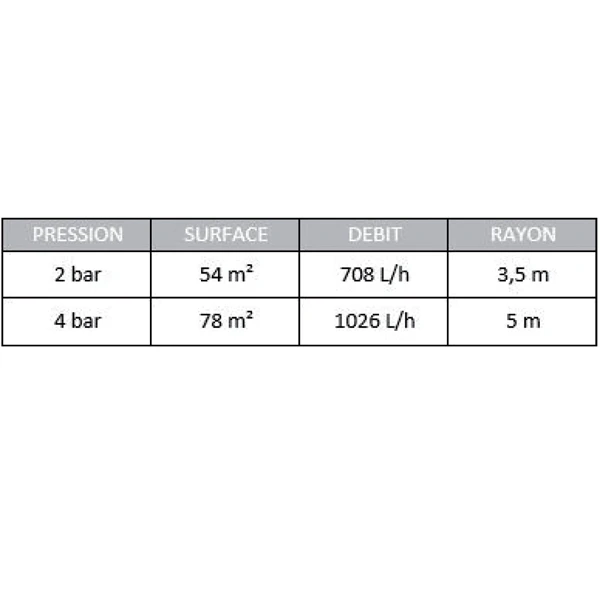 | 4 bar | 78 m² | 1 026 L/h | 5 m |