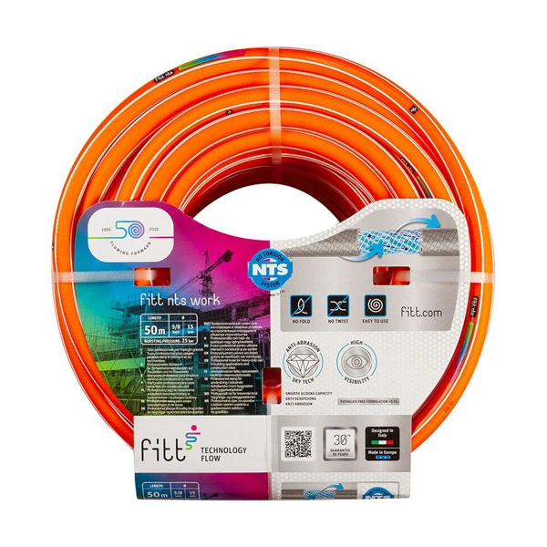 Tuyau d’arrosage professionnel NTS Work Fitt – Diamètre 15 mm – Longueur 25 mètres – Orange